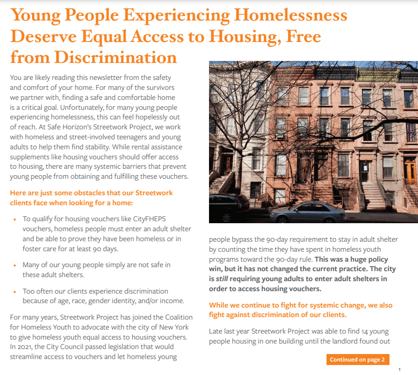 Reflecting on the extraordinary achievements of Safe Horizon advocates and the inspiring stories of abuse survivors.